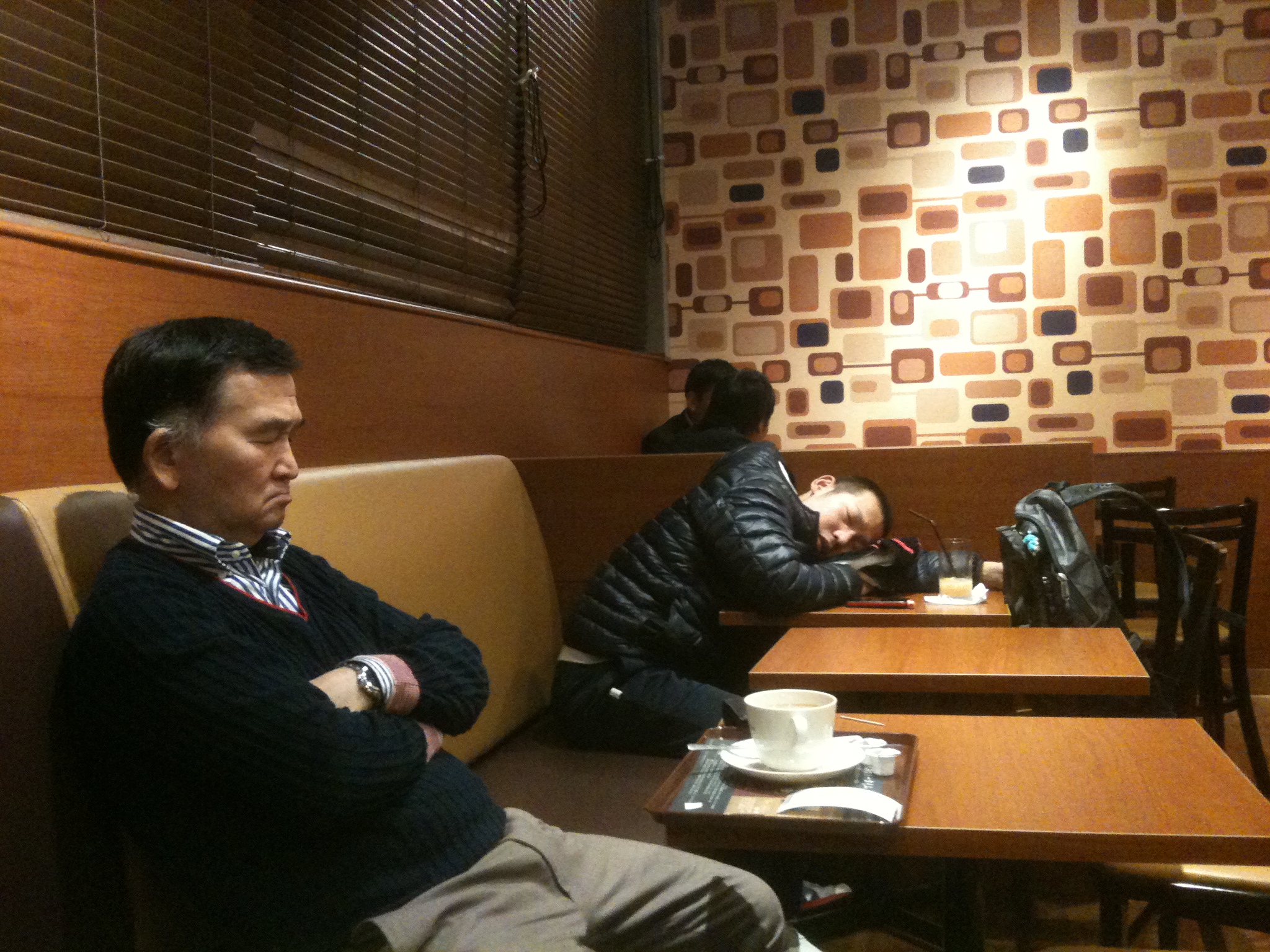 Pero luego debió pensar "venga, que me lo he currado" y se echo una siestecita, que como se ve en la foto por aquí son bastante populares (el hombre de al lado también estaba echando una cabezadita).
